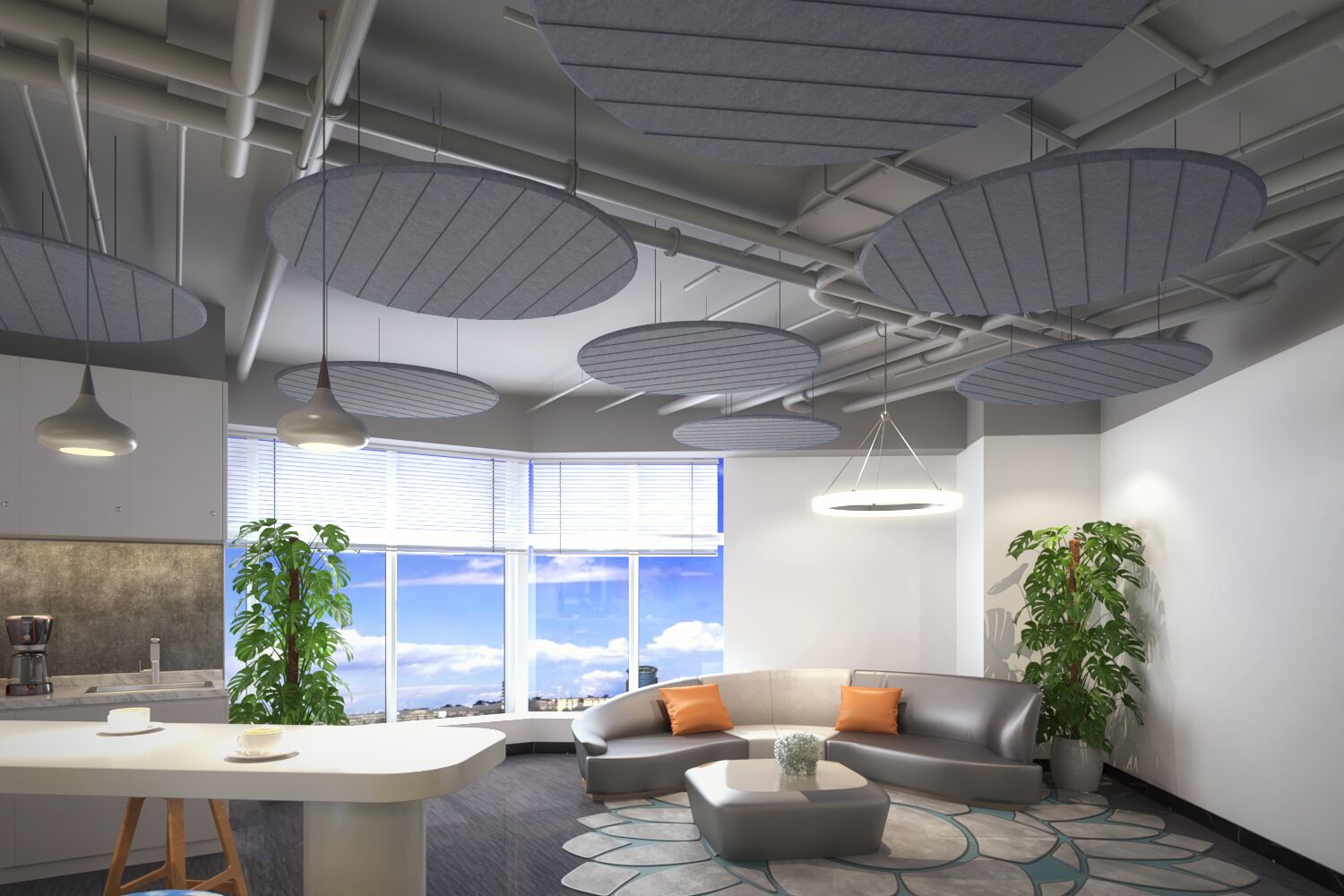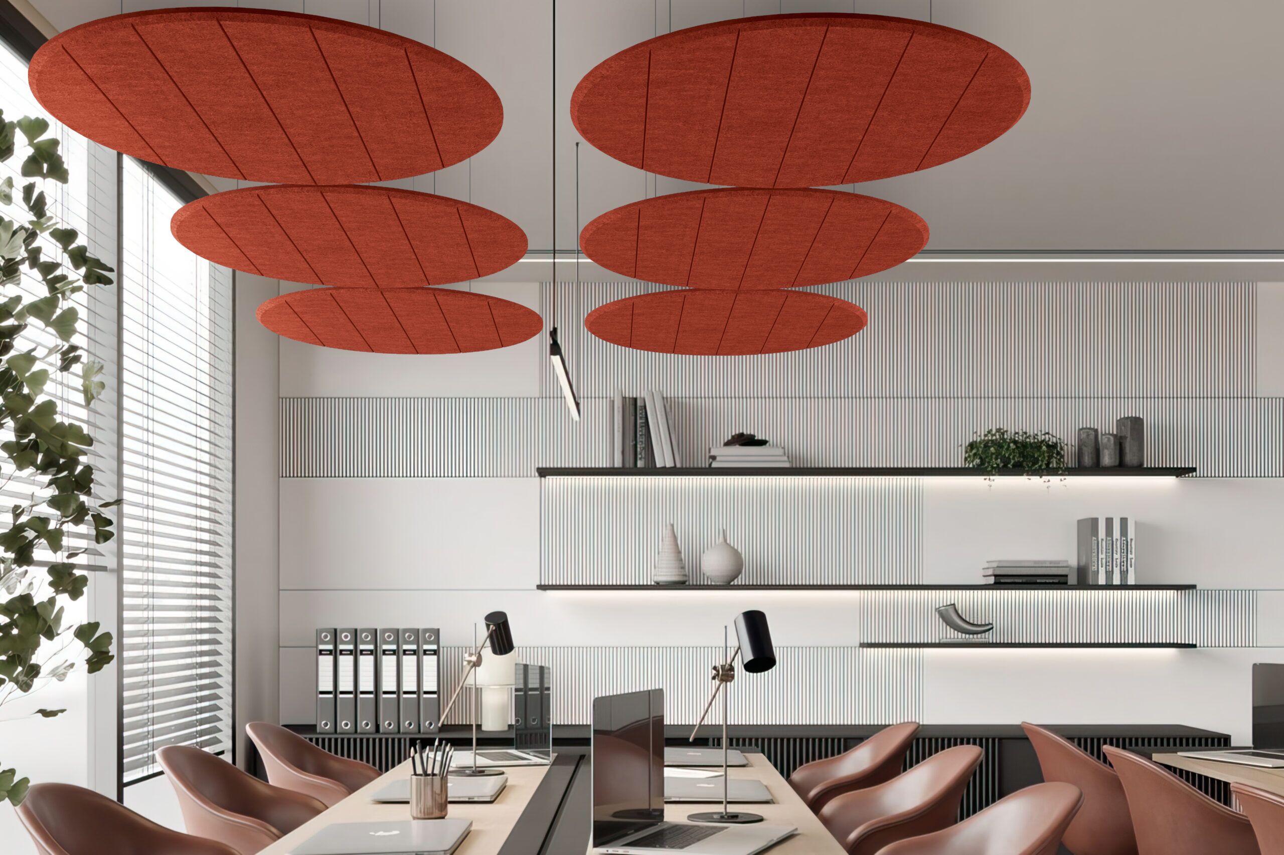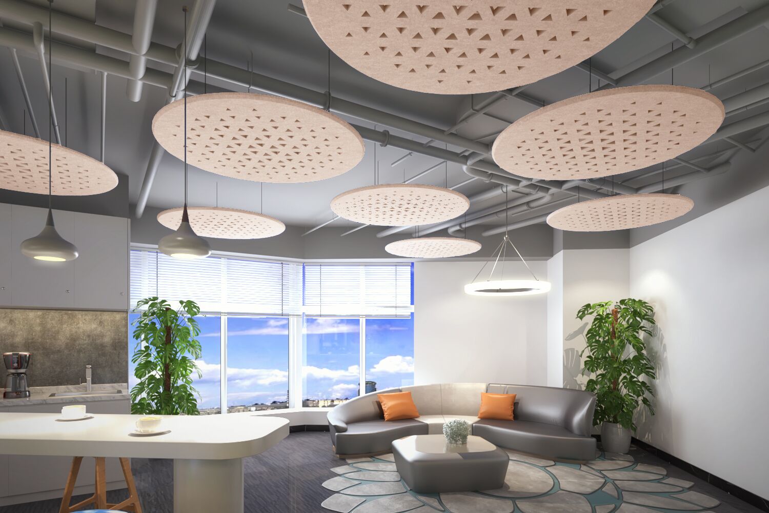 With an adjustable suspension system, Atmos can be positioned directly above noise sources, delivering a finely tuned, high-performance acoustic solution that combines aesthetics with sustainability.
