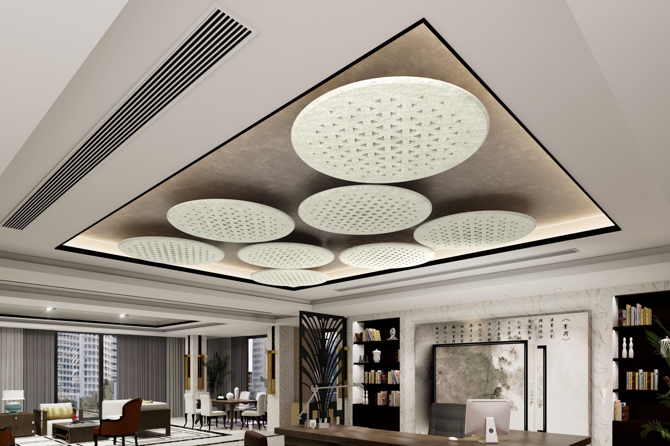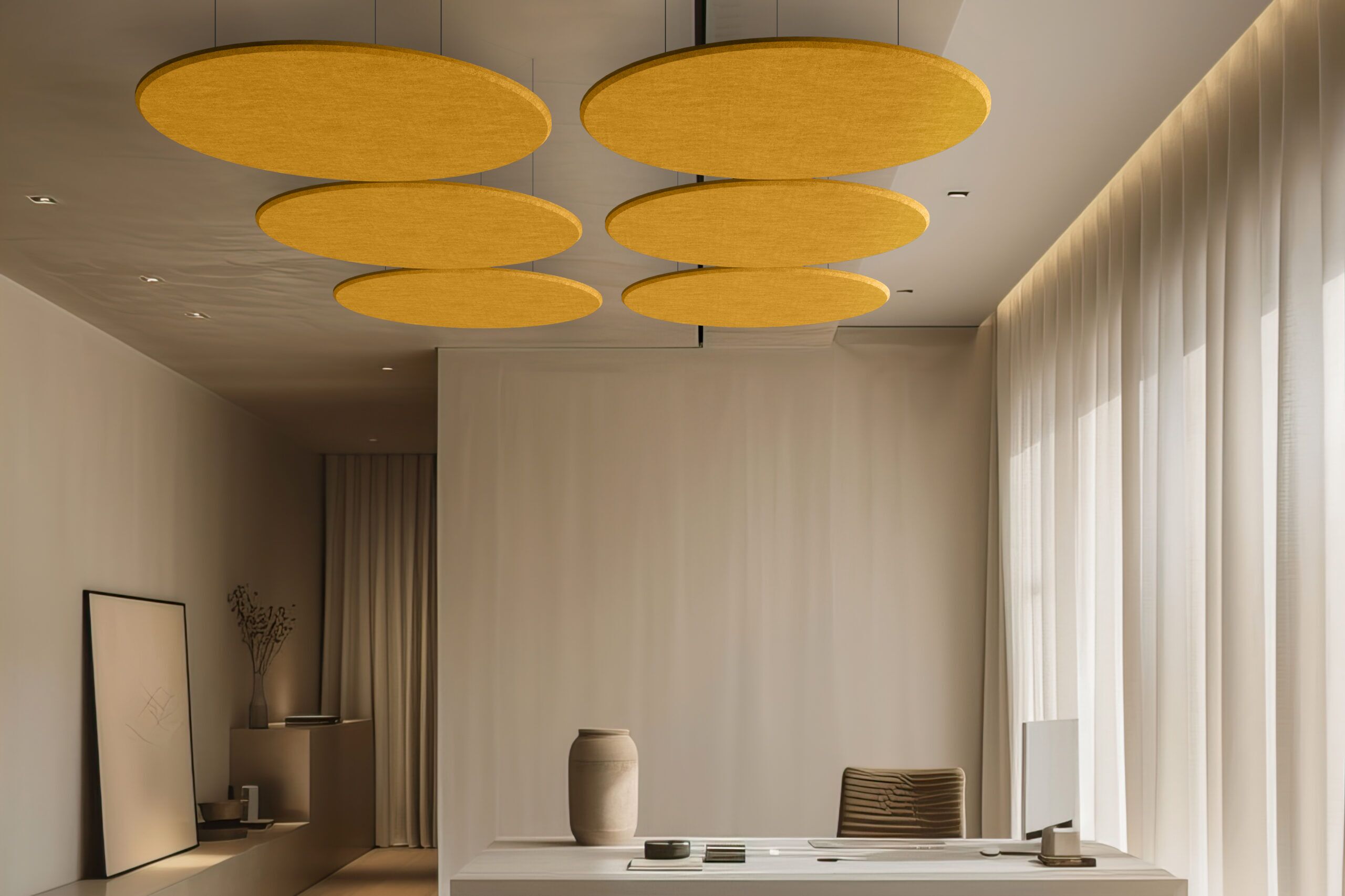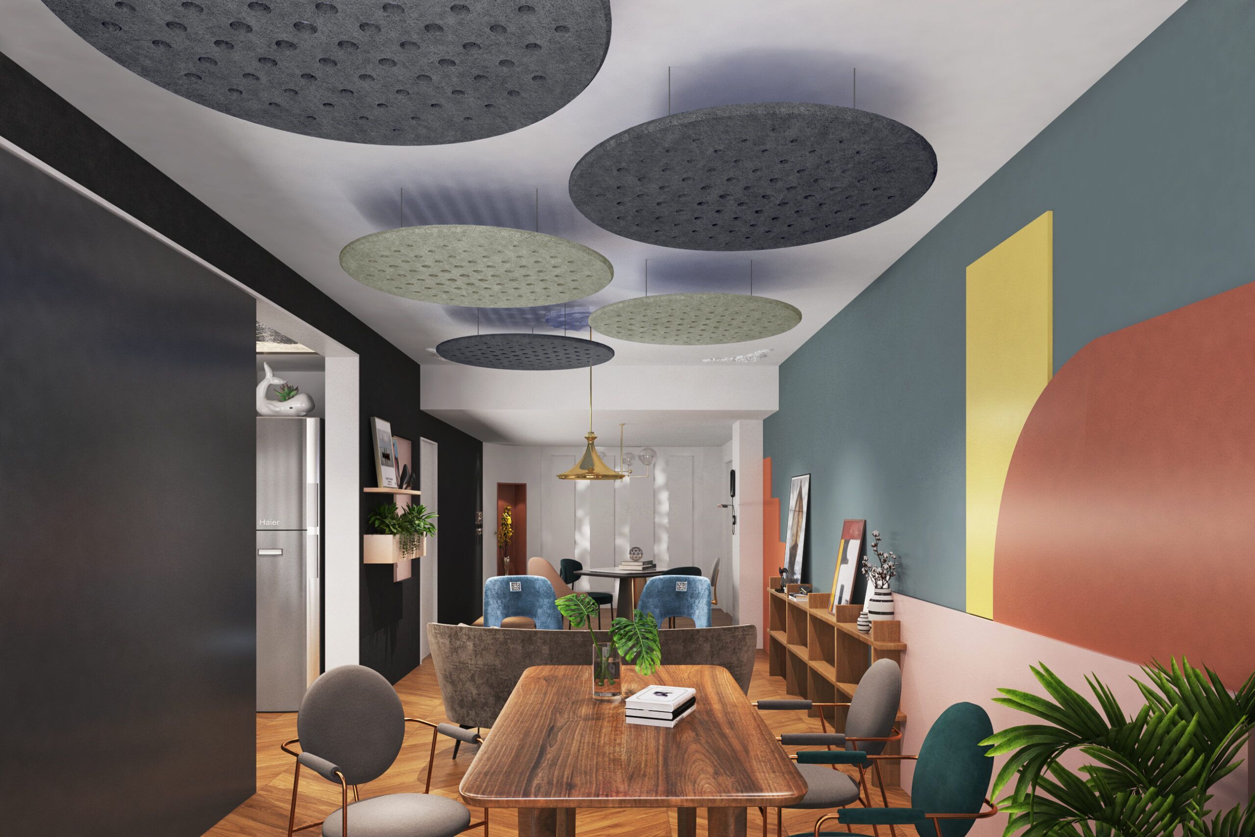 With an adjustable suspension system, Atmos can be positioned directly above noise sources, delivering a finely tuned, high-performance acoustic solution that combines aesthetics with sustainability.