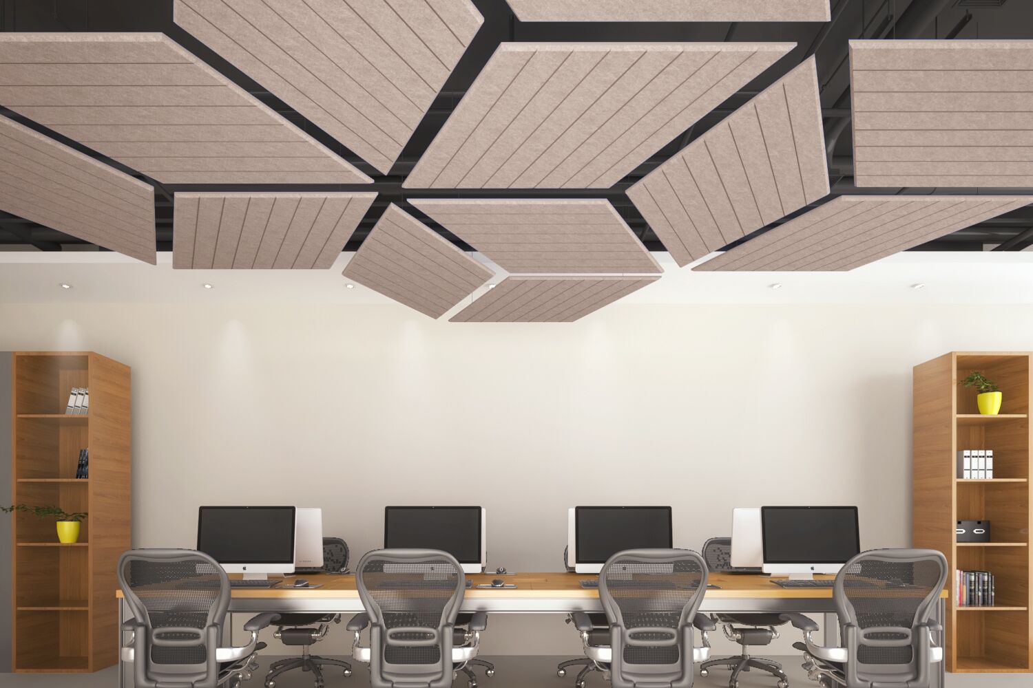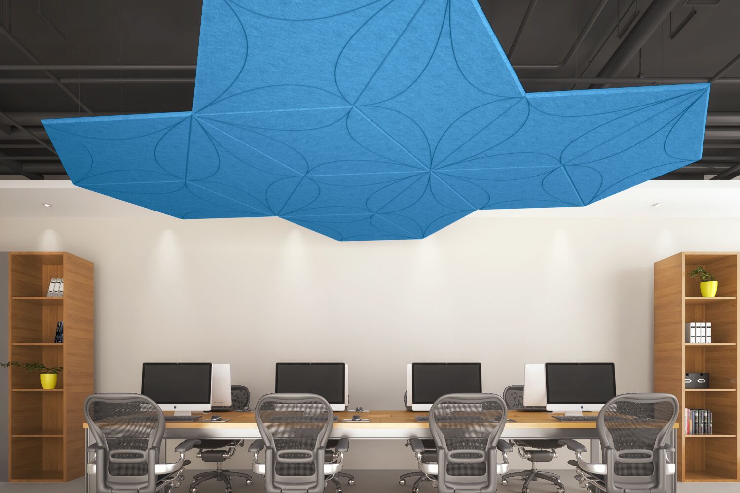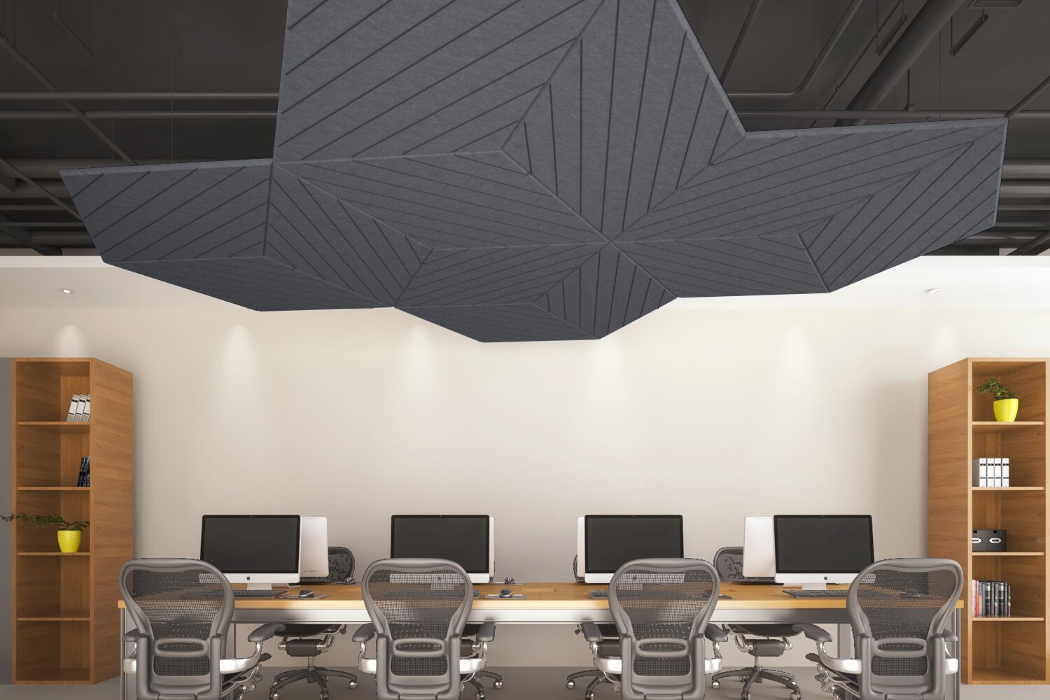 With an adjustable suspension system, Atmos can be positioned directly above noise sources, delivering a finely tuned, high-performance acoustic solution that combines aesthetics with sustainability.