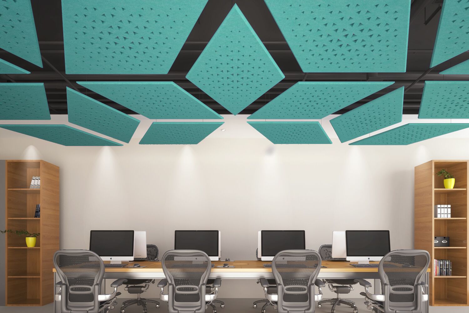 Add a new dimension to your interior space with Atmos, a dynamic acoustic raft system offering a choice of geometric shapes in vibrant colour combinations. Designed for versatility, Atmos can be configured in endless formations to suit your design vision.