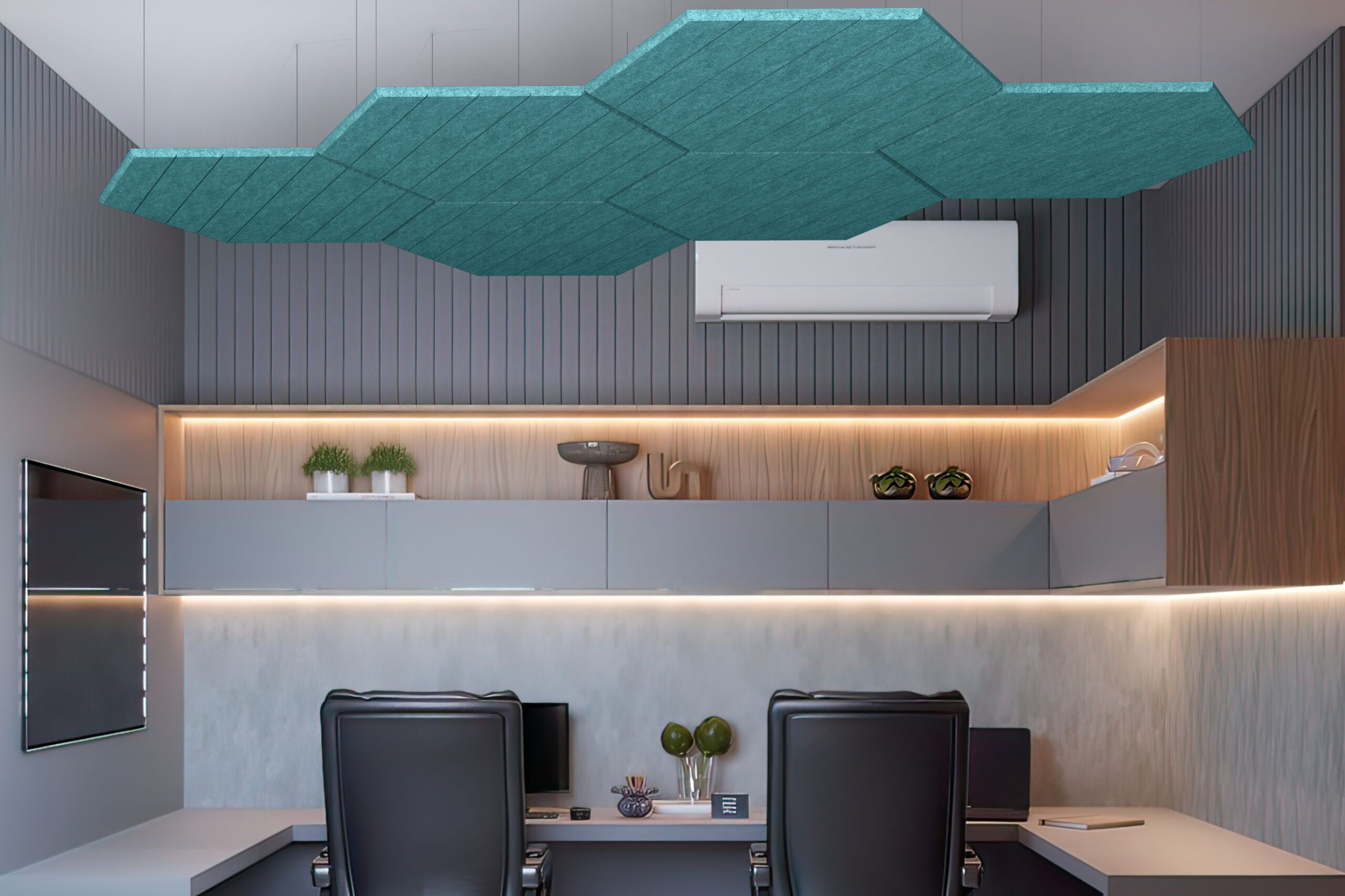 ATMOS rafts absorb sound and reduce reverberation, improving speech clarity and overall comfort in the room. This makes conversations easier and creates a more pleasant environment.