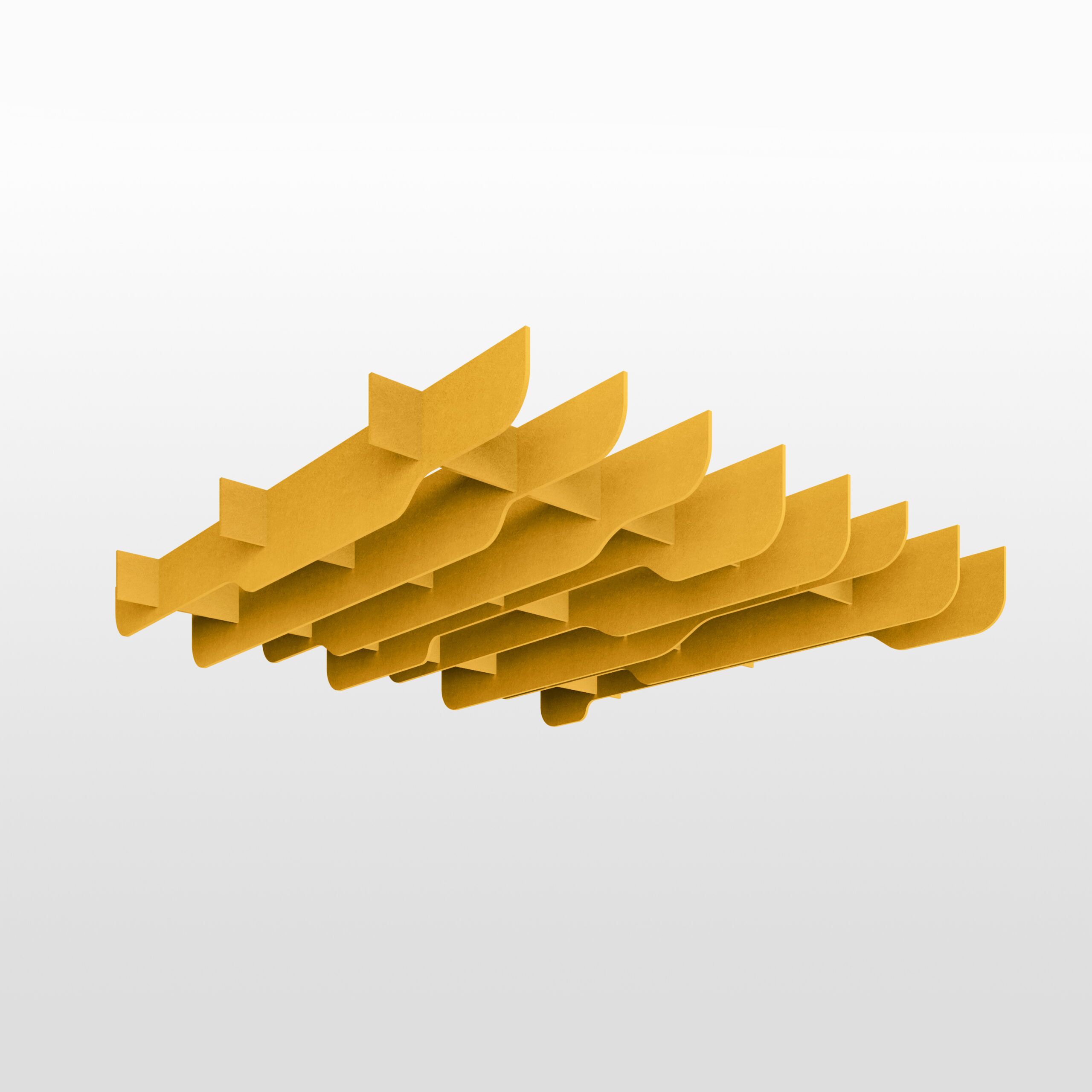 Redefining modern aesthetics, geometric form, and spatial depth, our suspended acoustic landscapes not only enrich your interiors visually but also enhance acoustic performance — reducing reverberation and creating a more comfortable, habitable environment.