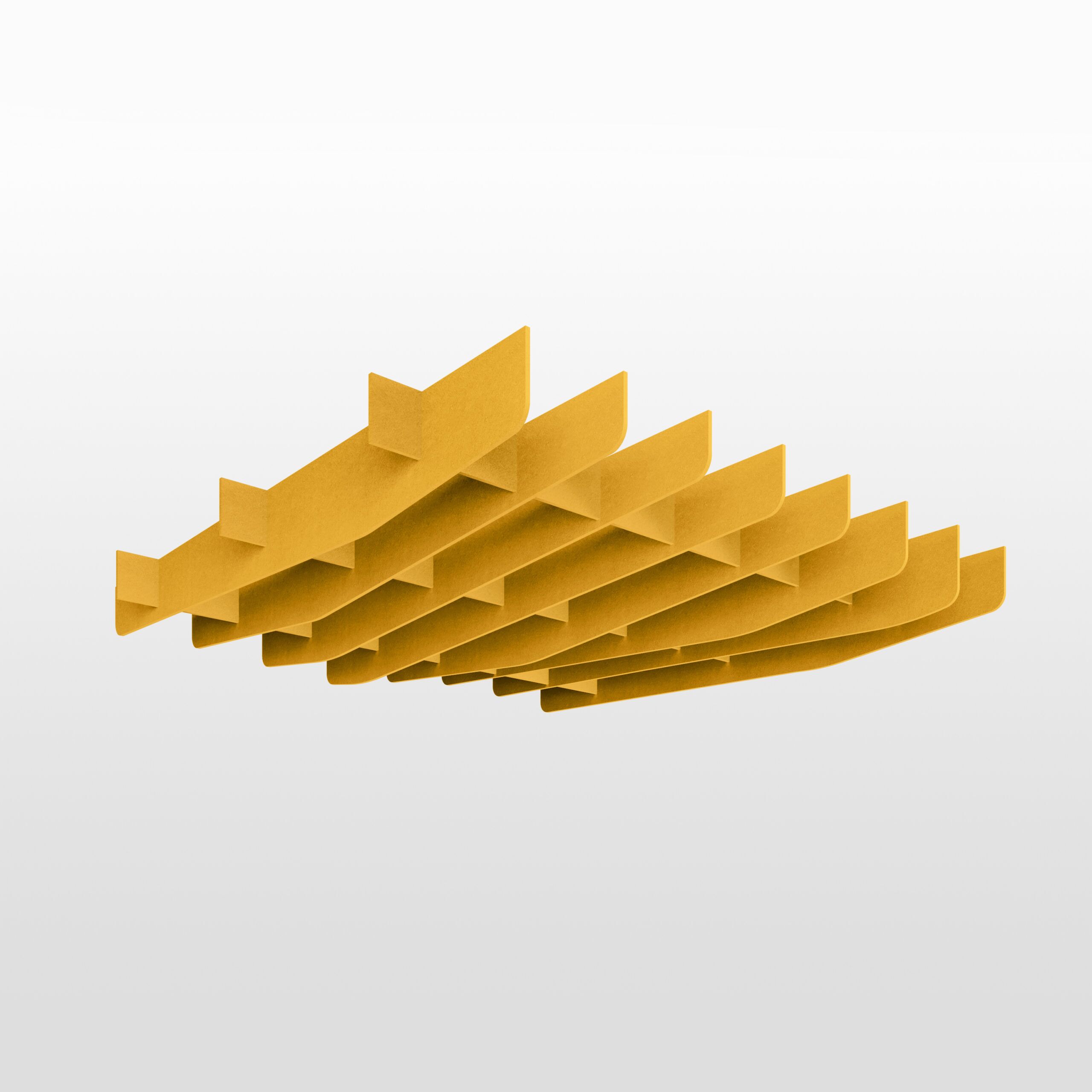 Redefining modern aesthetics, geometric form, and spatial depth, our suspended acoustic landscapes not only enrich your interiors visually but also enhance acoustic performance — reducing reverberation and creating a more comfortable, habitable environment.