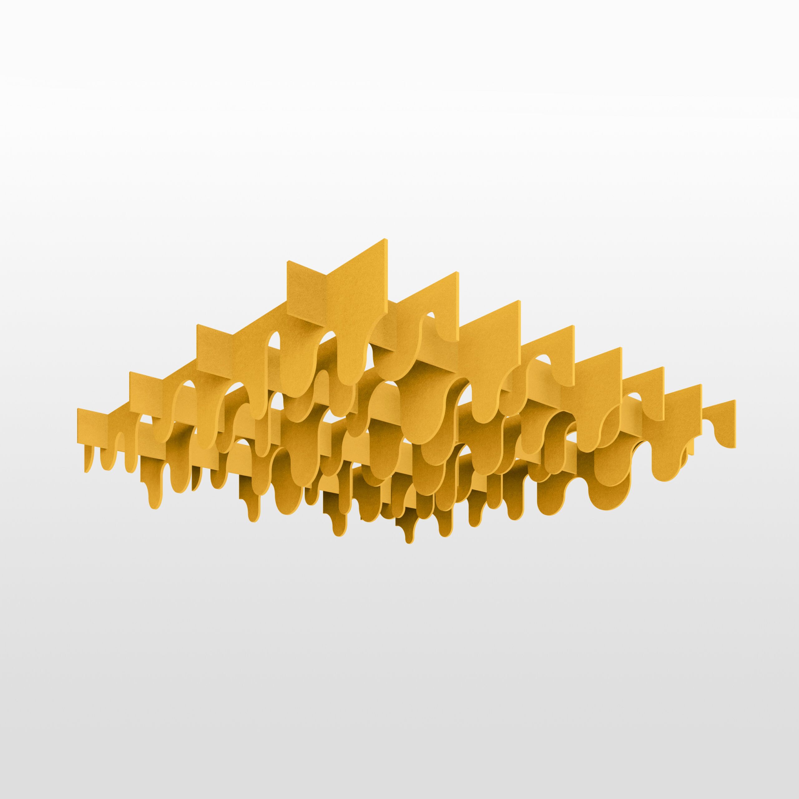 Redefining modern aesthetics, geometric form, and spatial depth, our suspended acoustic landscapes not only enrich your interiors visually but also enhance acoustic performance — reducing reverberation and creating a more comfortable, habitable environment.