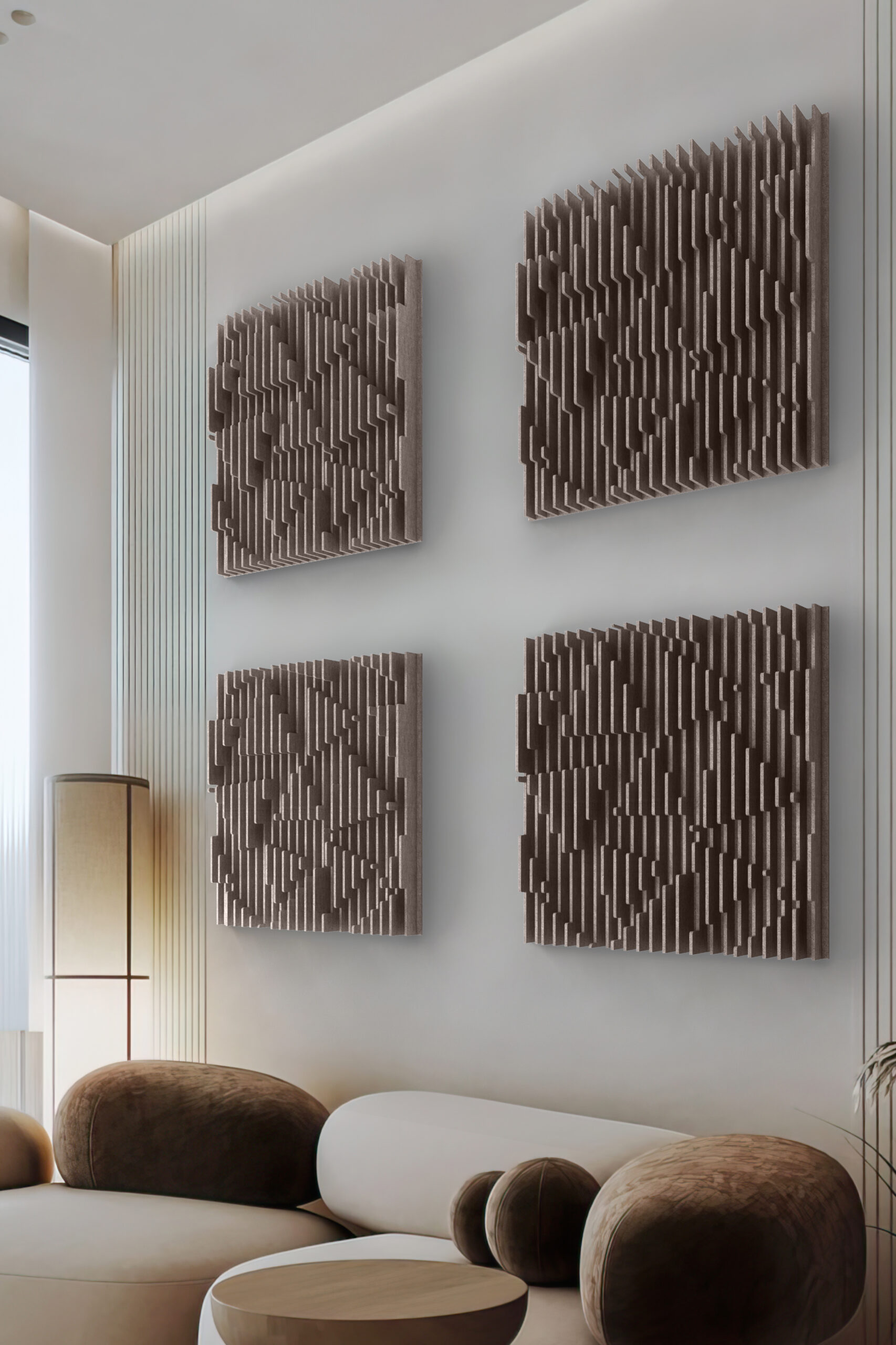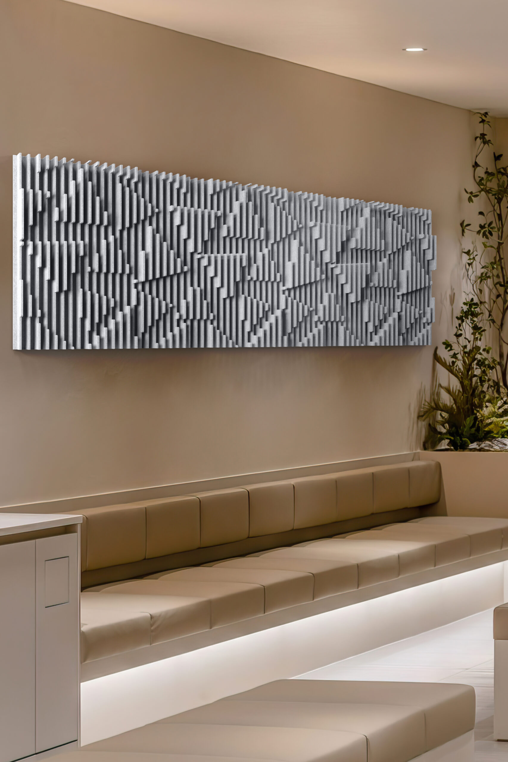 Tone panels feature a 3D optical illusion of designs that acts as both high quality absorber and diffuder for sound aberration. Tone is available in a range of innovative designs to create a bespoke feature in any interior space.