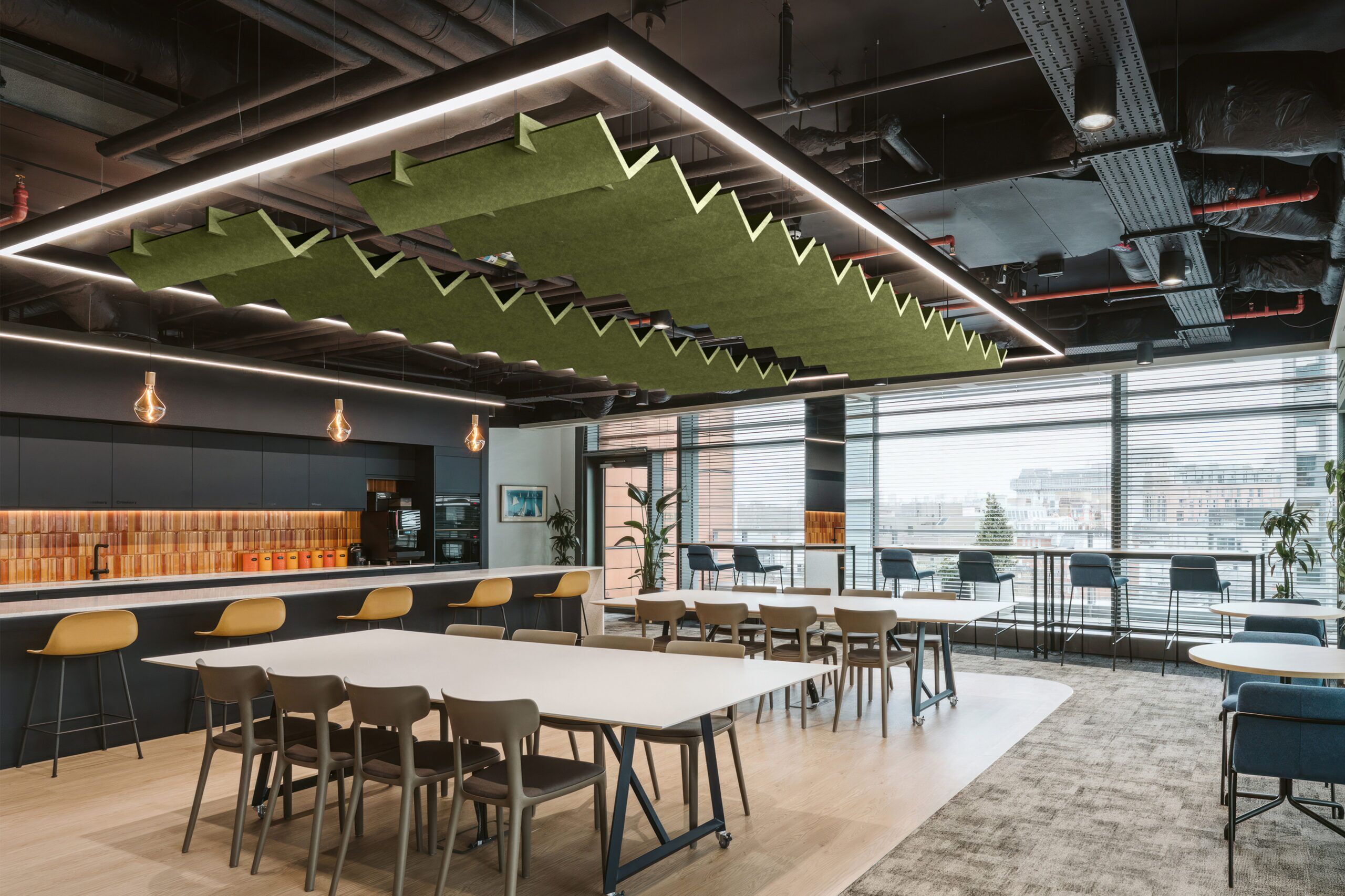 Ideal for breakout spaces and workstations, Canopy enhances both visual and auditory comfort in modern interiors. By integrating standard modular baffles, it allows for the customisation of ceiling designs, emphasizing specific areas while improving overall acoustic performance. With its versatile configuration options, Canopy gives you the freedom to explore endless design possibilities and bring your unique vision to life.